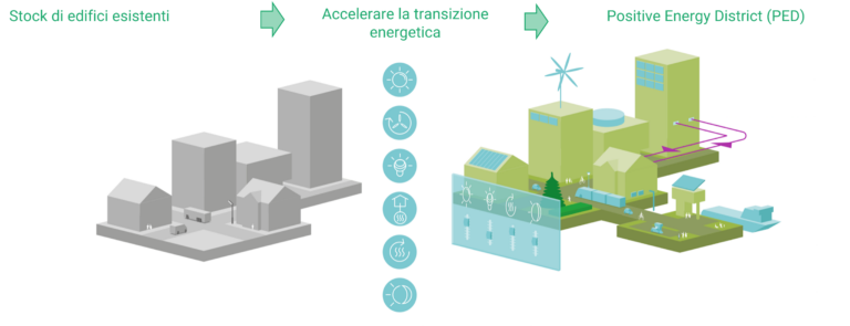 • L’integrazione di queste soluzioni per raggiungere l’obiettivo di un Distretto a Energia Positiva e lo sviluppo di comunità energetiche.